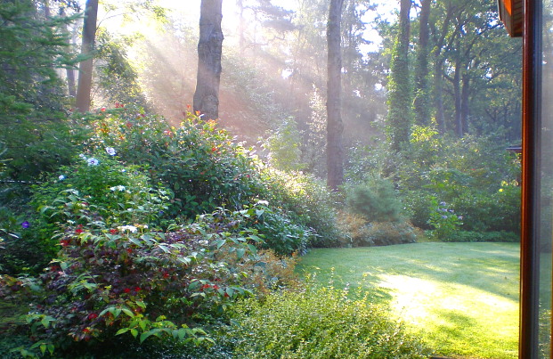 Zo ziet het er dezer dagen te Onzent uit in de ochtend – bij een broodje en een kopje thee.