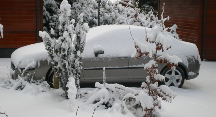 Ondergetekende is, ijs en weder dienende, weer in ’t grote -en nu ook zeer witte- bos beland. Van daaruit hebben wij inmiddels ook al een ‘Partner’ ingeruild (we hebben toch elkaar nog…) We kregen er een Luxe “BigBoss-Sedan” voor terug. Het ding zit vol fraaie snufjes, vooral gericht op comfort en veiligheid. Het ging echter vooral om het pittige motorvermogen (Peugeot 407, 2.2 ltr. – 160 Pk) waarmee we ons rollend vakantiematerieel voortaan zelfs zó over Alpen en Pyreneeën zullen kunnen rollen… Laten zien kunnen we onze nieuwkomer nauwelijks: hij staat hier geheel ondergesneeuwd te wezen.