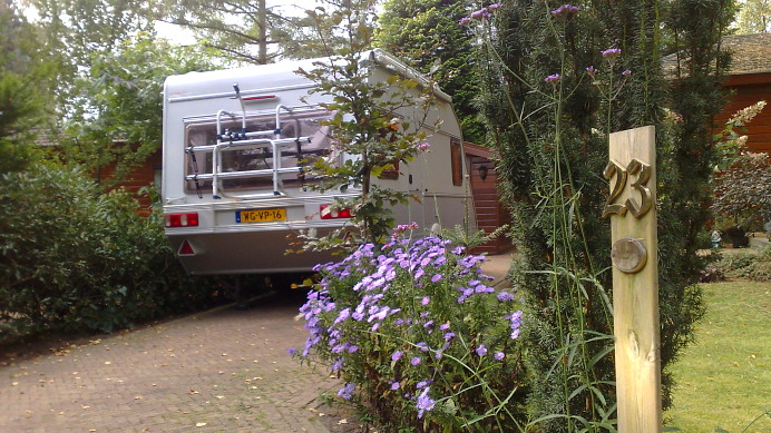 We zijn alweer bijna een hele week thuis en alle klusjes zijn geklaard.  Joop heeft z’n ‘kakesement’ onderworpen aan zowel de kaakchirurg als de mondhygiëniste en is met een visueel gehandicapte dame door de bossen bij Apeldoorn gestruind.  Hanneke bezocht intussen haar ‘eigen’ hoogbejaarde en liet zich door de doktersassistente via een bloeddrukmeter beknijpen.  Verder is het gras (voor de laatste keer waarschijnlijk) geschoren en zijn er tig kruiwagens met dennennaalden afgevoerd (nog steeds een oeverloze aanvoer overigens).  Het is ineens volop nat en winderig: H*RFST.  Dus: W*gw*z*n!  Hoog tijd voor onze jaarlijkse seizoen- en zonverlenging.  Vanaf dinsdag j.l. staat hier daarom de caravan al op ’t erf.  Die is nu geïnspecteerd, schoongemaakt en voorzien van spullen.  Morgenvroeg gaan we er van door; desnoods dwars door de files …  Eerst maar een dagje of vier Parijs en daarna door naar Méditerane Streken.  Passen jullie intussen even op ons Vaderlandje,  dan zetten wij de bloemetjes (en de wijn e.d.) wel voor jullie buiten!  Via 06, @mail en dit Blogje blijven we intussen volop bereikbaar.  Tot horens/of lezens/ dus!