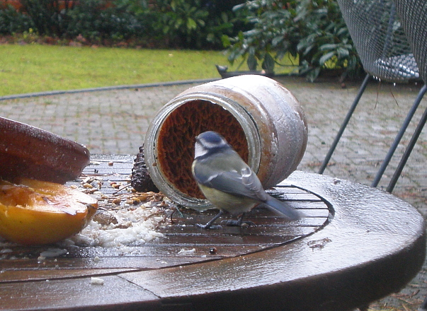 Niet alleen een zeer jeugdige Evert van Benthem of een even zo jonge Pieter van den Hoogenband hebben er baat bij – zoals je op de foto ziet weten ook Mezen heel goed dat je “er Groot en Sterk van wordt, van Pindakaas!” Hier wordt er tenminste flink van gesnoept, vooral nu de Vorst zijn Heerschappij als terloops weer heeft bevestigd.