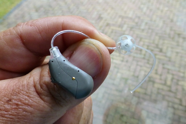 Hallo lezertjes, zoals de titel al aangeeft gaat dit stukje ‘uit ons leven gegrepen’ over Trappen en over Elektrische Ondersteuning. Nu niet meteen aan een ‘wind-mee-fiets’ denken, want die twee zaken kunnen zich ook gescheiden van elkaar voordoen: lees en huiver … Ons “trappen” vond gisteren plaats; een prachtige dag die wij als volgt doorbrachten: Fietsjes op de auto, daarmee naar Hoenderloo en vandaar via een fraaie ‘knooppunten’ route door bossen en IJsselvallei naar Zutphen. En vervolgens weer, via vele kleine plaatsen en een beekvalleitje, terug naar de auto in Hoenderloo. Op die terugrit weken we nog een kilometertje of twee ten Noorden uit om op ‘Heidehof’ bij Ugchelen het graf van mijn ouders (en mijn oma van vaders zijde) nog eens te bezoeken. Dat was alweer jaren geleden voor ’t laatst alweer het geval en ’t was ook toepasselijk want juist vandaag ben ik alweer 20 jaar een heus weesje. Al met al zo’n 75 kilometer fietsen, waarbij we tot onze tevredenheid vast mochten stellen dat er conditioneel niks mis lijkt: geen spierpijn of wat. (Wel een ‘zadelkont’, maar dat mag ook gerust bij een volledig ontbroken training vooraf.. ) De eerder vermelde “elektrische ondersteuning” betreft dan ook niet ons fietsen -wij kunnen nog bijster goed zonder, zo blijkt- niettemin vindt zo’n ondersteuning nu wel plaats te onzent. En wel vanaf vandaag. Bij mij. Achter het oor. Of, nauwkeuriger – achter beide oren, want daar bevinden zich voortaan twee versterkertjes, vooral voor de hogere tonen.