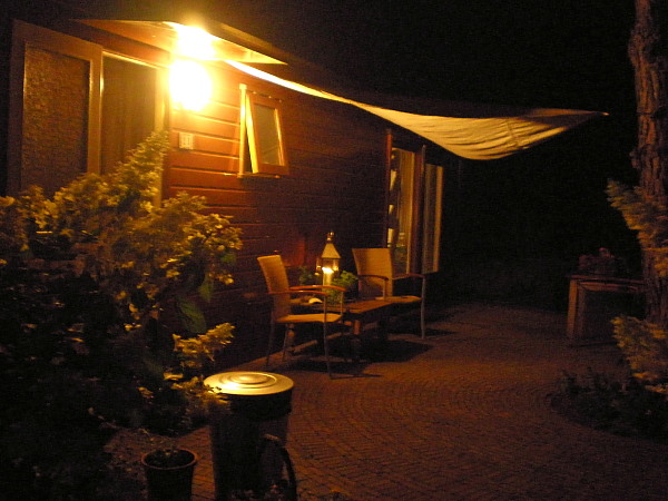 Wat je opbreekt is natuurlijk ook de wel zéér beperkte isolatie van zo’n dunwandig, houten huisje: als we ’s nachts alles uitbundig open hadden was het ’s morgens vroeg zo’n 22 graden binnen. Hielden we vanaf dat moment alles potdicht dan werd het later in de middag tóch ruim 28 graden binnen. Zweten! Inmiddels zag mijn Geliefde kans om één kwartier voor het stappen in de bus te Arnhem (voor weer een weekje vakantie-begeleiding met onze ‘doelgroep’) nog gauw even zeiknat te regenen in de eerste, overigens zeer gewenste, bui op een grote parking zonder schuilplaatsen… Zij zit, hopelijk opgedroogd intussen, dezer dagen in Noord Holland in of rond De Rijp met een fikse groep mede vakantiegangers. Ondergetekende zit onderwijl in Utrecht en smeedt plannen om z’n gratis treinkaartje, onder meer met behulp van z’n vouwfietsje, om te zetten in een lange, boeiende & sportieve dag uit. [Bijvoorbeeld: met de trein (en vouwfietsje) naar Heiloo en dan met ’t fietsje van Egmond aan Zee tot Zandvoort, vandaar via Haarlem -en eventueel een museumpje ofzo- naar station Heemstede-Aerdenhout en dan weer treinend terug…] Het lijkt er nu op dat dinsdag of woensdag a.s. daar heel geschikt voor zouden kunnen zijn. We’ll see!