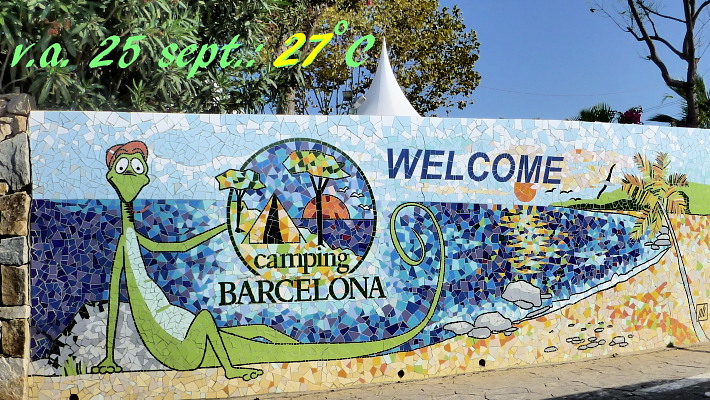 Vandaag besnuffelden wij Mataró en morgen doen we hetzelfde met Barcelona. Vanaf de camping wordt je met een eigen 20-personen busje met airco op afroep naar beide binnensteden vervoerd. Gratis – waar vind je dat nog in onze eigen platte landerijen aan de zee? NA één of twee dagen rondzwerven in en om Barçelona gaan we wel weer terug naar la Douce France, want het is hier ‘gevulder-met mensen’, lawaaieriger en vooral: érg warm – elke dag ruim 27 graden nog… Hoewel de Wifi hier te zwak is voor Skype kunnen we er wel min of meer ‘continue’ op. Ook is ons probleempje met het mail-ophalen weer opgelost. Morgen dus o.a. ‘la Sacrada Familia’ van Gaudí. Hoewel we al iets van hem gezien hebben, want hier in Mataró staat een jeugd-ontwerp van hem. Een kleinere markthal in houten bogen, die nu dienstdoet als expositie ruimte. Kortom: wij bruinen -al rondzwervend- als terloops nog even verder.