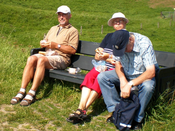 Plots lijkt iedereen jarig: de meest direkte familieleden, vrienden en kennissen worden nu al doorgaans tussen de zestig (ik: begin volgend jaar) en vijfenzestig jaar oud.. Hanneke morgen ( nog een bescheiden) 57 ! Intussen laten we daardoor onze levenslust niet ontmoedigen: integendeel ! Er wordt gereisd; wij dit jaar al ruim twee maanden per boot, Hanneke met vrolijk gehandicapten, wij vanaf donderdag weer even varend en dan wij samen weer -vanaf september- zo’n twee maanden met ons sleepbedje met de Zon mee naar Zuid. En er wordt gewandeld. En ook gefietst: zie fotootje van een lekker tochtje met de Vallei, de Utrechtse Heuvels, het Rivierenland en het Veluwemassief onder de smalle banden met onze vaste fietsfamilieleden uit ‘Kiepedoarp’.