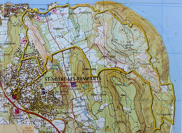 Hierbij één daarvan: ca. 15 km. en buitengewoon fraai qua landschappen, uitzichten, paden en begroeiing. Met het véle stijgen en dalen overigens een hele dagtocht – zeker ook omdat de dagtemperaturen, zelfs bij wat bewolkter weer, steevast tegen de 25 graden aan bleven hangen. Martiques, het stadje dat op de toevoer opening van het Middellandse Zeewater is gesitueerd, bezochten we opnieuw, we waren er ook vorig jaar. Vandaag vingen we ’traag’onze terugtocht aan. We doen dat in rustige stukken van rond de 400 km. Je komt dan ergens in de middag al op een nieuw, vooraf uitgekozen, plekje aan. [We kiezen steeds een camping vanuit de duizenden die zijn aangesloten bij de “Acsi” keten – buiten het hoogseizoen voor zo’n 16 euro per nacht met elektra, douche e.d. Hier in het zuiden moet je nu al goed zoeken want veel campings zijn na 30 september gesloten: volgens de zuiderlingen is het bij 25 graden toch al wel winter te noemen…] Het weer, de ligging van de camping en mogelijkheden om te wandelen, of te fietsen – vooral dus ‘bezichtigend rond te zwerven’- bepalen vervolgens hoelang we ergens blijven rondhangen. Nú zitten we een km. of 20 ten zuiden van Chalon-sur-Saône (waar we natuurlijk in 2006 en 2007 ook al twee keer een week ‘te water’ vertoefden) We denken hier -bij ca. 21 graden nog en droogte tot na het weekend- een dag of twee á drie lekker rond te fietsen. Om daarna verder door te reizen de Herfst in: een volgende stop zal ergens bij Arlon zijn, vermoed ik…