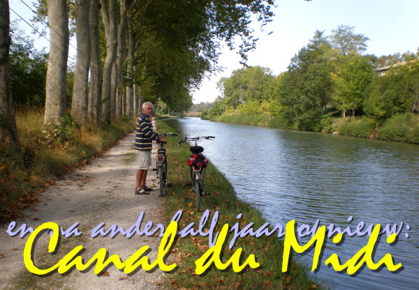 Sedert begin deze week zijn we dan onmiskenbaar in ‘het Zuiden’ aanbeland (nabij Carcassonne): plattere geheel terracotta daken, buitentemperatuur overdag standaard rond 20 graden, géén dauw te bekennen in de vroege ochtend, e.d.  We staan in een prachtig gebied aan de rand van de vallei tussen het Franse centraal massief en de Pyreneën; aan de Pyreneese kant. In een klein dal, naast een meertje, op zo’n 210 meter hoogte; fraai en ook nog goed beschut tegen wind (Mistral denkbaar!)  Eergisteren sjouwden we rond in de omgeving, voor een deel over de GR 7, tevens een Pelgrimspad – onderweg werden we gevoerd door een wandelaarsminnende Fransoos: vijgen en passievruchten, zó van de tak.  Gisteren reden we naar Castelnaudry (ca. 18 km.), pakten daar de fietsen uit de auto en toerden daarmee langs het Canal du Midi.