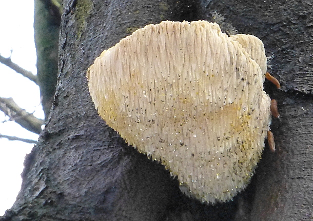 We wandelen, zoals jullie weten, wekelijks een dag en zijn nu net terug van een km. of 22 nabij Leusden en Amersfoort. Tijdens een vorige tippel kwamen we deze paddenstoel tegen, een heel forse, hoog groeiende Pruikzwam – vrij zeldzaam!