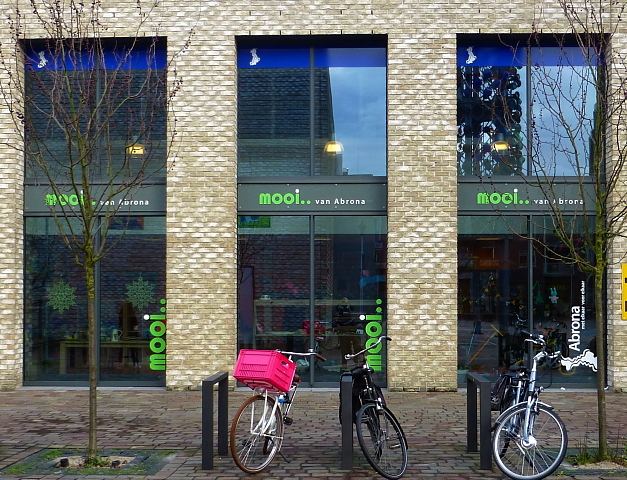 Hallo lieve lezers, op de valreep aan het einde van dit jaar nog even een berichtje. Dank voor de diverse groeten allereerst. Vorig keer meldden we al dat Hanneke was toegetreden tot het gilde der Kleine Middenstanders: hierbij een foto van de winkel “Mooi”, waar ze voortaan -geheel vrijwillig- op maandagen werkt. Zoals ik al vermeld heb, maakt deze winkel deel uit van een dagcentrum voor volwassenen met een verstandelijke beperking. Een haar welbekende groep medelanders. Het bloed blijft dus kruipen … juist – en nu niet langer alleen maar in vakantietijd.