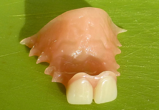 De titel van dit stukje slaat echter op een zeer persoonlijke renovatie mijnerzijds. In overleg met Jean Marc, m’n tandarts hier, heb ik namelijk besloten om de steeds losser zittende kronen op mijn beide voortanden niet direct via implantaten aan het bot vast te zetten, maar eerst een half jaar dit (tijdelijke) plaatje uit te proberen en dán te kiezen of ik die route wel wil gaan. Ik voel me nu dus een kloon of nazaat van Theo en Thea, kijk maar: