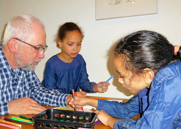 Ben terug uit Tavira. Dus is het niet meer rond 17 graden C. maar weer gewoon Eerste Oosterparklaan winterweer. Slechts 3, 4 graden dus. Maar per vandaag wel prachtig qua zon & licht. Komt goed uit want morgen nemen we weer een groep Wandelpoolers op sleeptouw voor de tocht ‘DOMlopen 4′, die gaat vanuit Woerden. Bij voorbaat geslaagd dus – je krijgt er bovendien schitterende foto’s van met zo’n vriesblauwe lucht en dat lage licht. Met Thijs gaat het intussen niet onaardig. Mijn ‘mantelzorg’ werd dus wat meer bepaald door huiselijke karweitjes, koken, boodschappen doen en dergelijke dan in de meer verplegende zorg en ondersteuning. Wel was ik nog een middag en avond goed ziek: een echte ingewand-stoornis met volop kramp, spugen enzovoorts. En die arme Thijs meldde me zojuist per e-mail dat hij die kwaal nú heeft. (Hopelijk blijft ’t in Portugal want, al is het maar één dagdeel, je kunt ’t prima missen!) Hanneke had het eerste weekend dat ze alleen was Kea als logé en die kon dus ook mooi ‘mijn’ theaterkaartje voor Kees Torn en Onno Innemee ‘soldaat maken’. En afgelopen weekend logeerden Madeleine & Alexia hier voor de derde keer hier, dit keer dus bij Hanneke alleen. Zij verdienen onderhand even wat meer uitleg: Geruime tijd geleden gaven wij bij een vrijwilligers organisatie aan wel ‘in de markt te zijn’ als geregeld logeeradres voor één of twee jongere kinderen. Een soort alternatieve ‘grootouders’ dus voor wie daar behoefte aan zou kunnen hebben. Deze organisatie bracht ons ervolgens in contact met de moeder van bovengenoemde dametjes (6 en 7 1/2 jaar oud) Zij wonen, met nog een zusje van 15, in de nabijgelegen wijk Zuilen. Het klikte meteen prima met moeder en eigenlijk ook direct met de meiden zelf: ze kijken steevast uit naar de volgende keer.