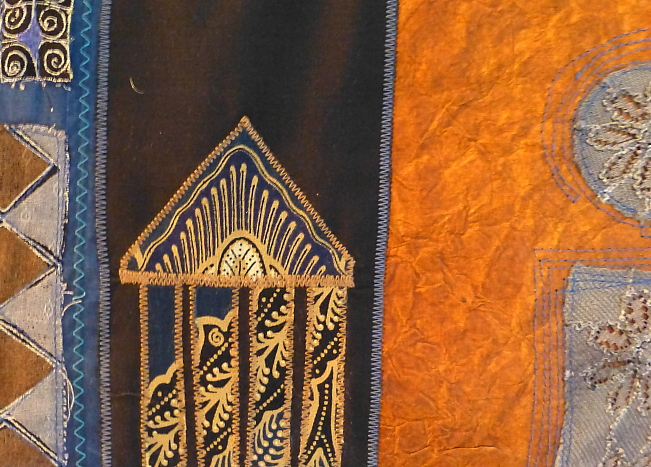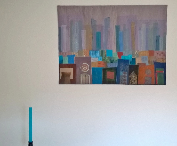Daaraan hebben wij onlangs deze heuse “Loes” kunnen toevoegen. Een textiel kunstwerk van onze vriendin uit Elahuizen. Wij konden daarbij kiezen uit wel twintig werken, want Loes is al jaren actief in dit genre. Haar werk blinkt in onze ogen, naast de grote variatie in totaal-indruk, uit in de subtiliteit van de kleuren keuze en de samengevoegde stof motieven en -structuur(zie detail). We kozen uiteindelijk voor dit werk. Omdat we het gewoon heel mooi vonden. Het past qua formaat en kleurstelling (hoewel gewaagd) mooi in ons interieur én het refereert wat ons betreft tevens aan het feit dat we stadsbewoners zijn geworden […] Voor bezichtiging kom je gewoon op visite of te logeren – dan krijg je heel Utrecht er nog bij.