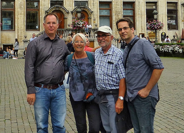 45 Jaar getrouwd waren wij. Op 30 juli j.l. om precies te zijn. Wij waren met onze zonen in Brussel (Want een paar terroristen maken ons ‘de pis niet lauw’ – zou Theo Maassen zeggen!) Zij hadden, natuurlijk buiten ons om, een fles wijn op onze kamer laten zetten én voor de warme hap een terras plekje aan de Grote Markt gereserveerd. Na uitgebreid rondgezworven te hebben in de binnenstad (zelfs Kasper heeft ‘geshopt‘!) zijn we in het Atomium beland. (We reden er al jaren langs – maar nu waren we er ook eens in)