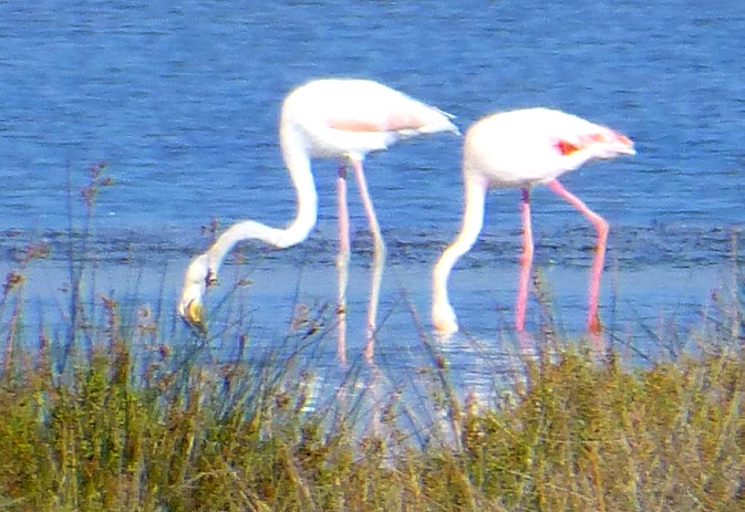 Sedert gisteren staan we in de Camarque. Meteen maar in de enige serieuze plaats daar: Saintes Marie de la Mer (zoom op google Maps maar eens in om te zien hoe eenzaam dat ligt). We waren er al eens eerder en fietsen er ook nu weer, net als toen, tussen de alom aanwezige flamingo’s en de vele paardjes door.