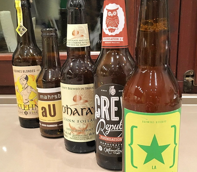 Er werd onlangs een doos afgeleverd te onzent. Een doos met wel 20 verschillende bieren. Niet zo gebruikelijk natuurlijk bij notoire wijndrinkers, zoals wij. Maar dat zit zo: Kasper is bij zijn werkgever, Kuehne+Nagel in Maarssen, bezig met het stroomlijnen van aan- en doorleveringsprocessen. Eén daarvan is de mogelijkheid om bieren via K+N, als een soort groothandel dus, kleinschalig te kunnen sorteren en verzenden – ook online direct aan de klant. Wij waren nu proefkonijn en deden met z’n drieën een proefbestelling. Om proefondervindelijk te zien of alles werkt zoals bedoeld. We hebben er ook maar meteen een proefavondje aan gekoppeld en een zestal bieren ‘aangeslagen’ aangevuld met een hapje, een maaltijd en genoeglijke kout. Er gaat niets boven proefondervindelijk genieten tenslotte. Als we allen weer terug zijn, Michiel v.a. morgen en wij v.a. 5 april, doen we dat vast nog eens gevierenlijk: we hebben tenslotte nog zo’n 14 verschillende ons soms onbekende flesjes staan…