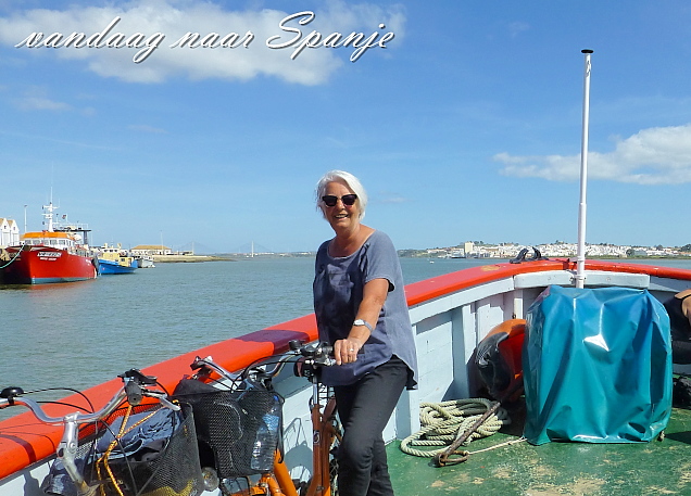 Zoals jullie in het vorige bericht al lazen doen wij hier voornamelijk niets. Behalve genieten van de zon, de zee en regelmatig uitgaan dan natuurlijk. Dat laatste is nog het meest vermoeiend. Zo gingen wij eergisteren op de fiets naar Tavira station (ca. 7 km.) We treinden daarvandaan naar Villa Real de Santa Antonio (grensplaats met Spanje, aan deze kant van de Guadiana – de grensrivier) We doorliepen vervolgens met de fietsjes aan de hand het centrum van V.R. de St.Antonio en staken over naar Ayamonte in Spanje – per fietsveer.
