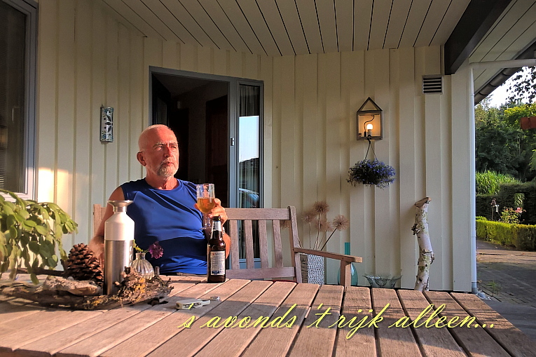 Het werd voorspeld én het bleek ook prácht weer van zaterdag j.l. tot gisteren. ‘k Heb dus vrijdagavond de fiets gepakt en van alles in de fietstassen gestouwd (wat reserve kleding, een waterkokertje met koffie- en drinkbouillon strips, een Knooppunten-in-heel-Nederland boekje, een tuinstoel kussen, m’n e-reader natuurlijk en zélfs een gasflesje met toebehoren zoals een pannetje, enig bestek, wat vaatwasmiddel, schuursponsje enz.) Je ziet: ik hou er van om onafhankelijk te reizen, overal kunnen bikken, e.d. Maar m’n tentje had ik dit keer niet mee – dat gaat niet meer in augustus: ’t is véél te lang nat ’s morgens… In plaats daarvan had ik in Enkhuizen en in Lelystad alvast telefonisch elk een “Vrienden op de Fiets”-adresje geboekt. (Dat zijn duizenden adressen in heel Nederland voor een standaardprijs van € 19.50 per persoon per nacht /inclusief ontbijt. Daar zijn we lid van voor nog geen tientje en het bleek nu reuze praktisch) Zaterdag om 08.00 uur vertrok ik.