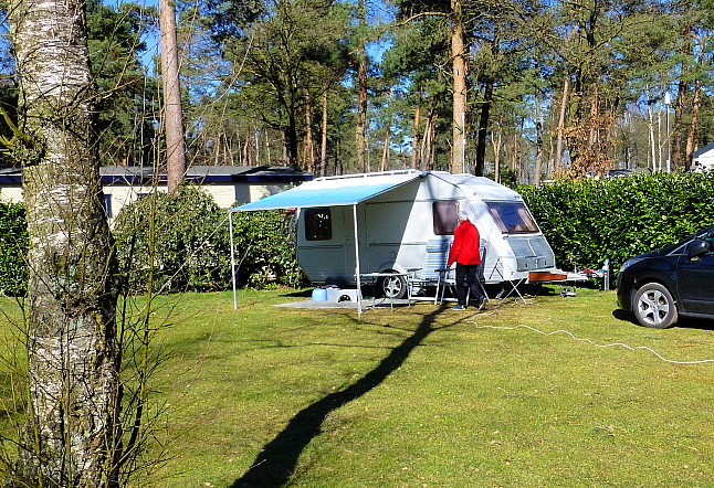 Onze rol-villa blijft daarbij overigens heel comfortabel: vloerverwarming, 20 graden binnen, tv op schotel, Wifi bijgekocht – en een straalkacheltje van max. 1000 watt. bij te zetten zodra de binnen temperatuur makkelijker te handhaven is. Alleen gewone telefoon: dat was met amper één streepje H of H+ wél weer minimaal. Op de ‘middelste’ woensdag liepen we met z’n elven vanaf station Lunteren mijn laatste Wandelpooltocht van dit seizoen. [Meelopers vanuit Alkmaar tot Nijmegen] Ook die dag mooi droog weer. We hebben eigenlijk vrij weinig regen gezien; wél regelmatig zon. Bij het ontbreken van alle wind bleek één dag zelfs zonder jas in de zon zitten al mogelijk. Naast rondwandelen in de omgeving hebben we alle drie Zus&Zwager-koppels bezocht en zijn we naar Lunteren en Ede gefietst. Kasper kwam de laatste zondag over om met ons weer eens lekker over het Wekeromse Zand te struinen.