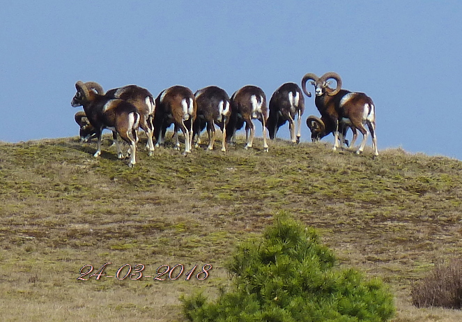 En daarbij zagen we -voor het eerst in járen- de hele kudde Moeflons weer!. Eerst kwamen ze langsdraven en daarna hielden ze zich, met drie groepen, langdurig en voor ons goed zichtbaar in het landschap op. Heel fraai: