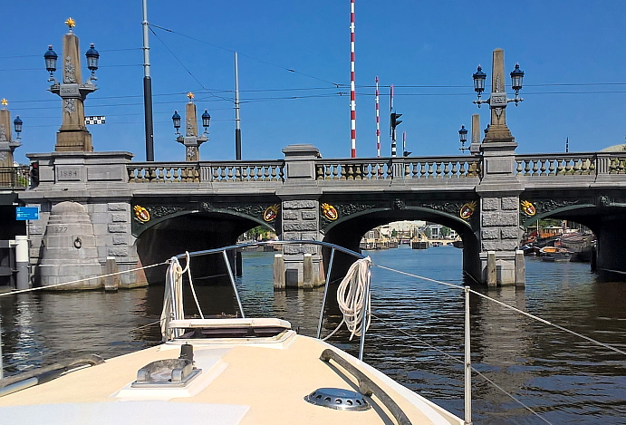 Zo fietsten we op een mooie woensdag naar R&B in Barneveld, 96b km. door fraaie natuur. Dat beviel ons zo goed, dat we plannen maakten om vanaf morgen samen naar Friesland te fietsen. Helaas blijkt nu de wind roet in dat eten te gooien: 4 Beaufort Noord/Noordoost is effe teveel tegenwind voor een (eerste) dagtocht naar Enkhuizen á 105 km. (Ik deed deze tocht vorig jaar, heb dus de km. aantallen en andere praktische zaken “in the pocket”) Gaan dus een daggie later per automobiel – en zijn donderdag al terug i.p.v. de geplande zaterdag… [Én een paar cliënten in/nabij ‘Hanneke’s winkeltje’ in ‘Vleuterwijde’ zijn blij, want ze komt nu tóch morgen] Wandelen deden we nu minder in als wel rond de stad: de stadsparken op het aloude laatmiddeleeuwse ‘Bolwerk’ blijven altijd boeiend, in groen, in bouwwerken én in de (mede)mensen die we daartussen ontwaren. Verder voeren we met z’n tweeën een drie-daags rondje met de boot. Vanaf de Vecht bij Nieuwersluis ’t Amsterdam-Rijnkanaal overstekend, het piepkleine riviertje “de Angstel” op, daarna de Vinkeveense Plassen over en dan via het nóg smallere riviertje “de Winkel” over (vaak slechts ca. 6 mtr. breed en zo’n 1.30 diep). Zo kom je uit in de veel bredere “Holendrecht”, vlakbij Ouderkerk aan de Amstel, waar we dan ook overnachtten.