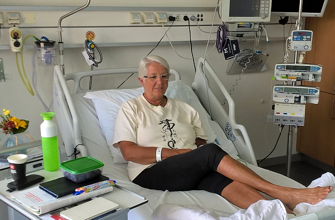 Dat was donderdag. Inmiddels lopen we allang weer prettig buiten rond en is het een alleen nog maar kwestie van rustig aan de conditie herwinnen. (Daarbij krijg je ook gespecialiseerde fysio-trainers aangeboden – om goed gecontroleerd te ervaren hoever je weer kunt gaan) Hoe je enen en ander verwerkt is weer een heel andere zaak. Beetje onduidelijk ook, want zelfs de schrik van het begin werd direct ‘ingehaald’ door de opname, inclusief het gevoel van veiligheid dat daardoor weer ontstaat. En één dag later is alles niet alleen in kaart gebracht, maar feitelijk ook al “opgelost”. Niet alleen de dreiging is dan dus weg maar Hanneke voelt zich nu zelfs beter dan in de maanden vóór de opname. (Best mogelijk dus dat de vernauwing haar al maanden langer parten speelde!). De gebeurtenissen moeten, zoals boven al gezegd, dus vanaf heden bij ons nog verder “indalen”. Voorlopig zijn we echter al heel tevreden met de uitkomst!