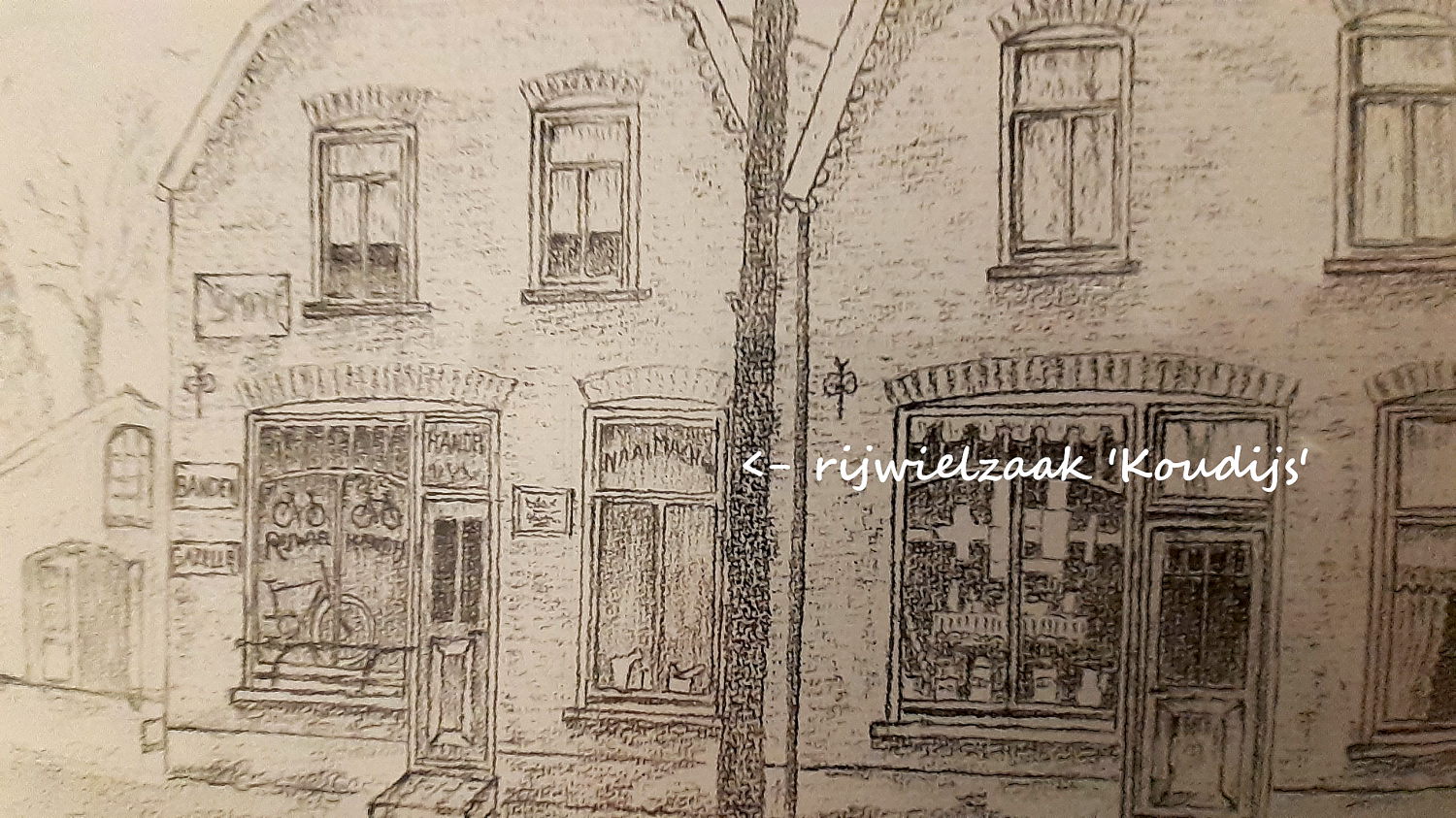 De ‘Januari-blues’ overvallen ons jaarlijks, tenminste als het niet elfstedentocht-achtig vriest en er ook weinig door dikke pakken sneeuw valt te banjeren. Dan wordt het zoiets als “dom wachten tot het wél weer aardig weer gaat worden…” Natuurlijk is bij ‘dom wachten’ enige “ferdivedaasje” (Fries voor: ‘verstrooiing’) beschikbaar als tijdelijke oplossing, want zoals jullie weten: tussentijds iets ondernemen verkort de tijd wat. Ferdivedaasje-momenten inplannen dus: Allereerst besloten de gezusters Koudijs, met medeneming van de meesten hunner gade’s, een bezoek te brengen aan hun geboortedorp. Want daar, in Lunteren, bevond zich een expositie van tekeningen-uit-vroeger-dagen; waarop onder meer de fietsenwinkel van Opa Koudijs werd geportretteerd. Opa was destijds algemeen gekend onder de doeltreffende erenaam: Reijer Pruts(!). We zaten daarna ná bij café Floor, ook een hen bekende plaats: de ouders Koudijs vierden er hun 25 jarige bruiloft, zus vierde er haar trouwdag, enzovoorts.