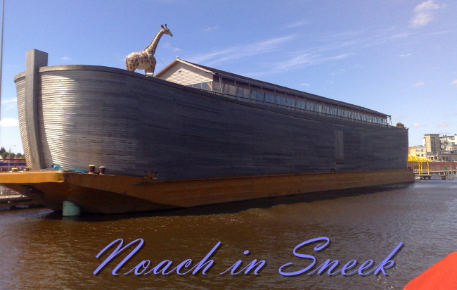 Omdat de wind onveranderlijk bleef ‘doorstaan’ besloten we op de ingeslagen weg, te weten: ‘de binnenlanden in’, door te gaan. Toen we Sneek uitvoeren kwamen we nog langs de ark van Noach die er, gezien de leeftijd, opmerkelijk gaaf uitzag. ( foto)