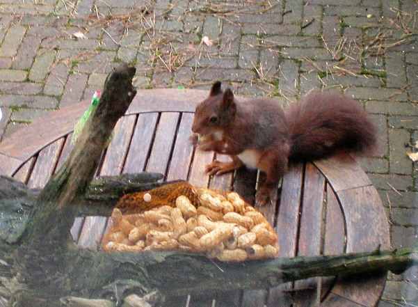 Hij rooft als een gek pinda’s en verstopt die dan op zoveel plaatsen (bijv. langs de terrasrand in ’t gras) dattie vast meer dan de helft nooit meer terugvindt… Maar goed, ook domme vrienden zijn hartelijk welkom [dus iedereen is weer w…]